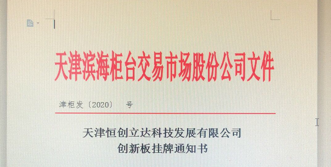 天津恒创科技申请天津滨海交易柜台创新版上市已获批
