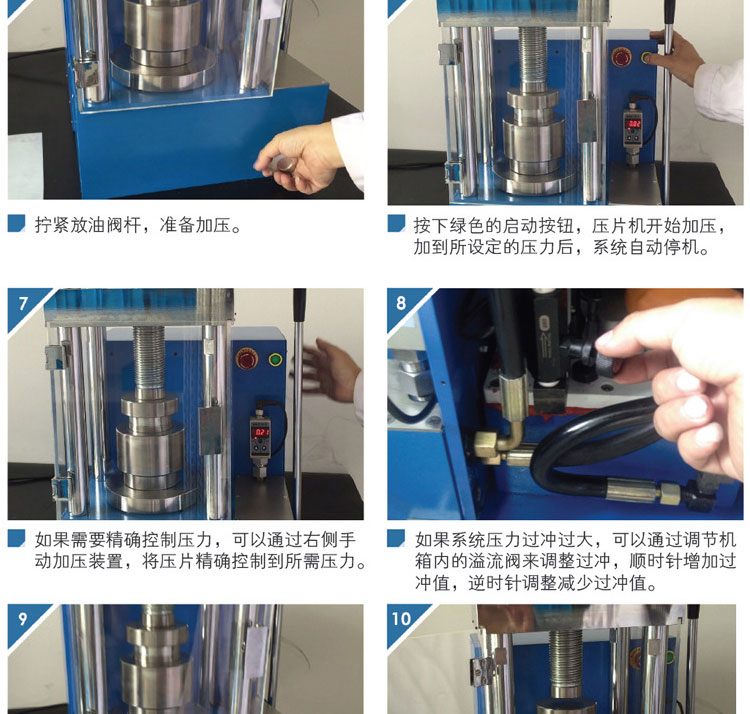 该产品采用电动加压和手动加压并存方式,制样速度快,精度高。适用于材料科学研究、催化实验、陶瓷烧结实验,水泥建材、药品研发制样等行业。