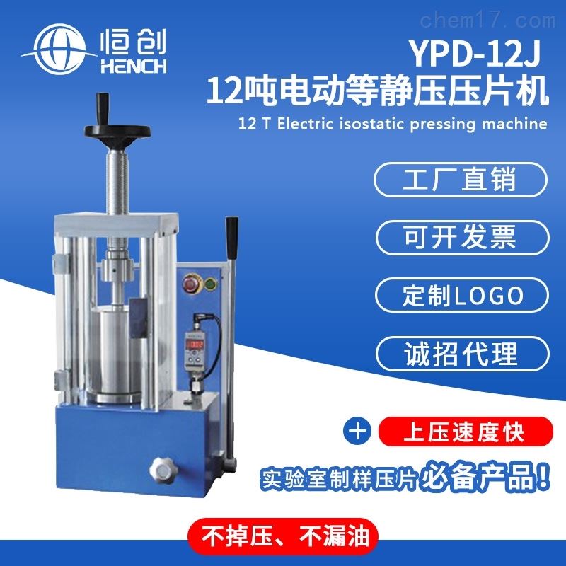 12吨电动等静压压片机为一体式机构,具有电动加压和手动补压两种方式,配有有机玻璃罩,密封性好,安全性高,广泛应用于科研、教学、制药、化工行业。