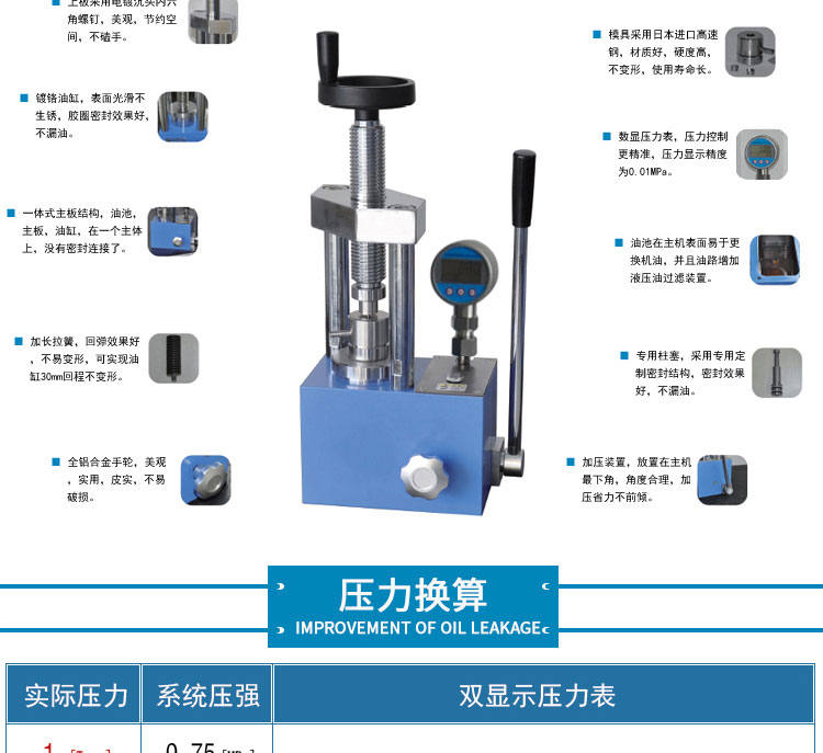 简要描述:40吨手动防护压片机,压力、压强双刻度显示,有机玻璃,设备无密封链接,减少漏油点,防护型压片机针对一些脆性的模具,防护型粉末压片机适用于安全性要求较高的场所或单位是针对欧美安全标准设计,符合出口标准。