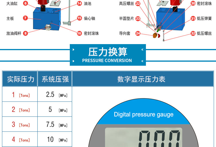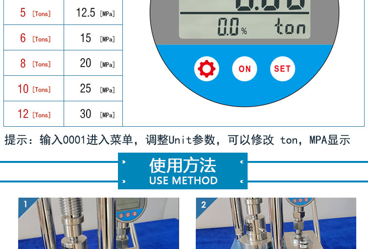 应用领域食品,化工,石油,地矿压力范围0-12T(0-32MPa)