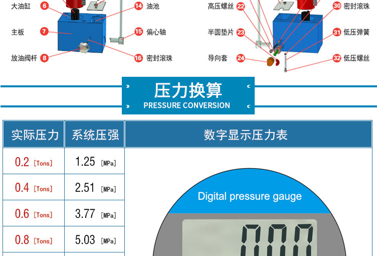 5吨手动数显压片机可以控制压片的原理,适用于直径小或是压力小于1吨的样品成型,此款压片机可压制一些粉末,样品成型后测试其表面光洁度,白度, 数显表不仅精度还可以杜绝指针表长时间使用指针不能回“0"的问题