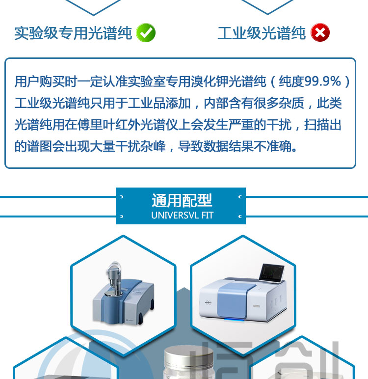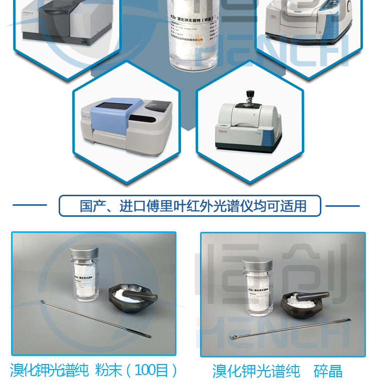 HF-A溴化钾光谱纯,符红外光谱用于分析化学中的光谱区段是中红外区,即波4000~400cm-1的范围内。溴化钾(KBr)在中红外区没有吸收,用它来压片测定不会对样品信号产生干扰。