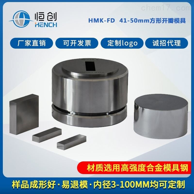 41~50mm方形开瓣模具 广泛用于大多数样品的成型及测试使用,适用于电池、陶瓷、催化、金属、材料、研发制样等行业。
