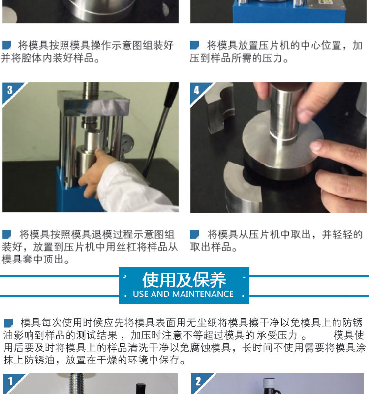 3.长方形开瓣模具针对一些细长条、圆形开瓣模具针对一些圆柱形样品或是一些不易成型的样品。