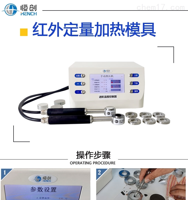 标准配置:通常有1套电加热模具+1套高温隔热板+1台温度控制器组成。压片机和水冷机为选购,模具加热后如需快速降温,建议配置水冷机。如需另购压片机,建议直接选购我司电加热压片机,让用户操作实验更方便。