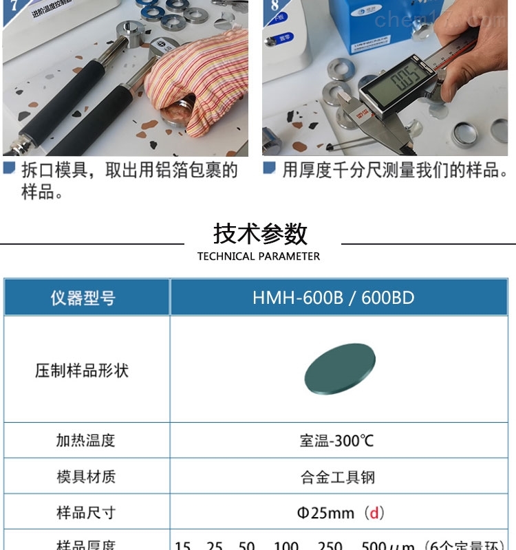 样品厚度:15、25、50、100、250、500μm(6个定量环)
