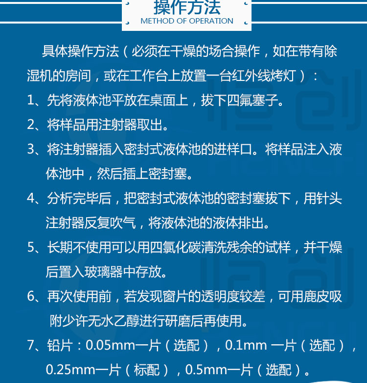 2.密封式液体池装配比较复杂,所以在使用时要非常小心,以免碰损窗片。