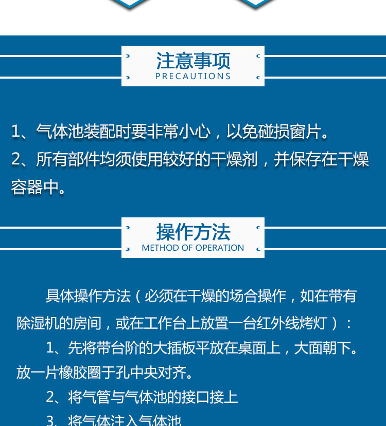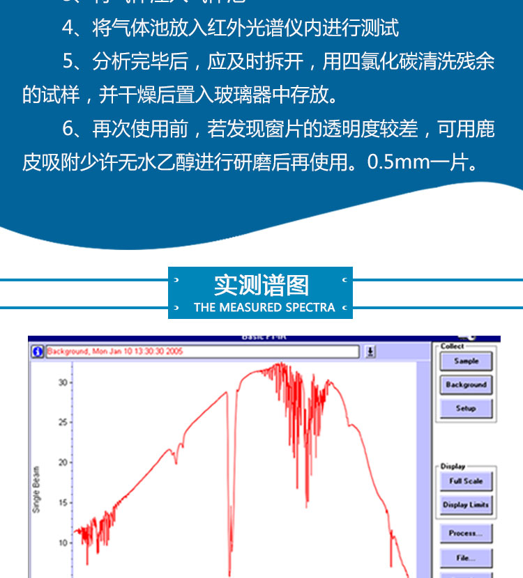 使用时只需要打开两个放压阀,把样品注入并充满气体池后,关闭其中一个放压阀,在注入样品将其充满后关闭另一个放压阀,放在红外样品室中即可。