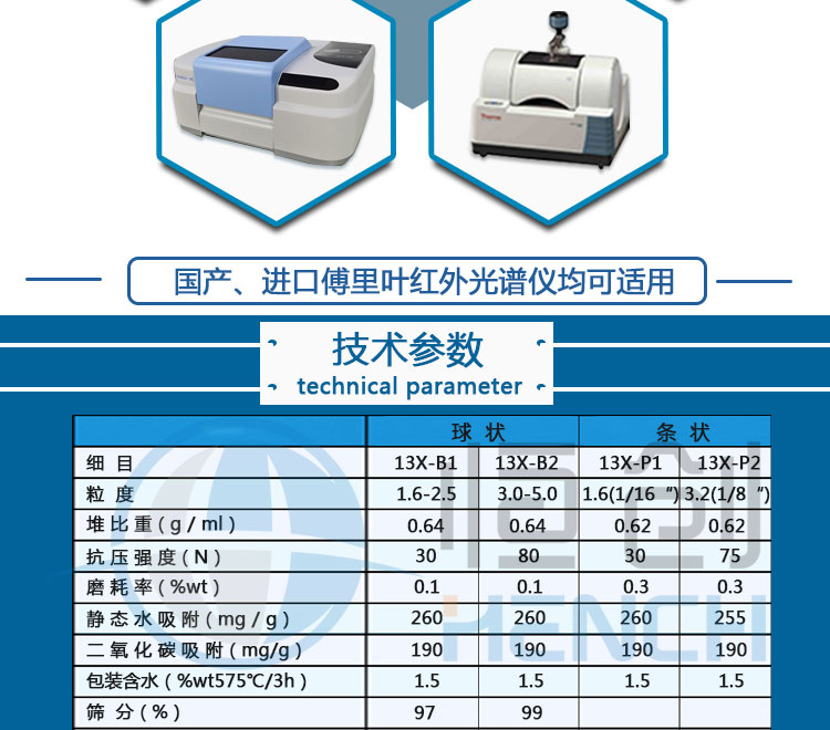 红外分子筛干燥剂适用于进口和国产傅里叶红外光谱仪,烘干后可重复使用,13X分子筛,条形,直径3.2mm,可用于吸附空气中的水分和二氧化碳。