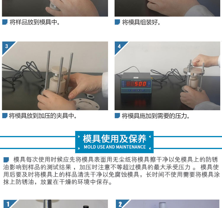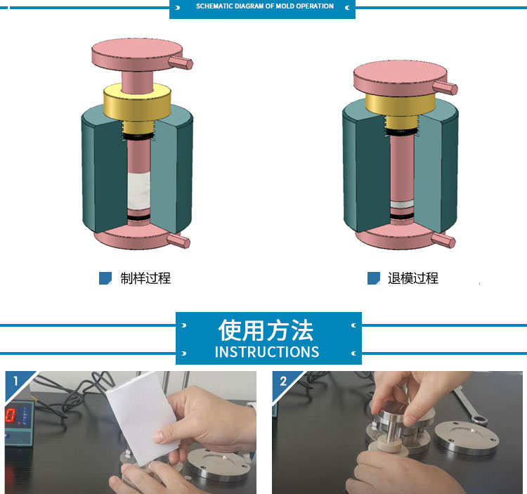 固态电池加压模具应用于固态电池的特性测试,可在手套箱内利用转移夹具将绝缘模具固定,放到压片机中压到适合压力,扭紧固定模具上面的螺丝,进行泄压,再将转移夹具和绝缘模具一起取出、测试。