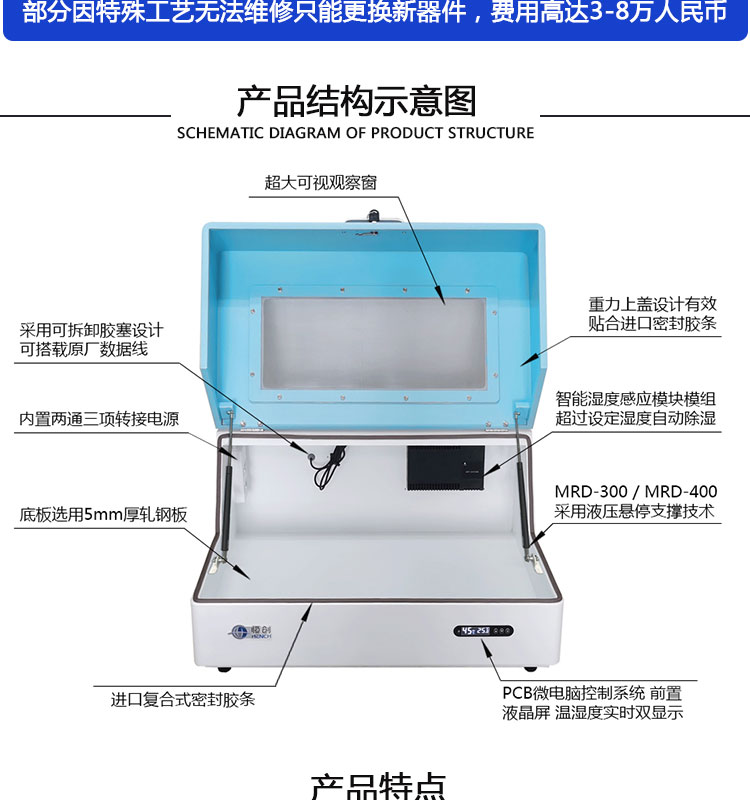 ▲ 除湿系统:智能湿度感应模块模组(较强等级),采用可再生循 环吸潮分子层膜,微