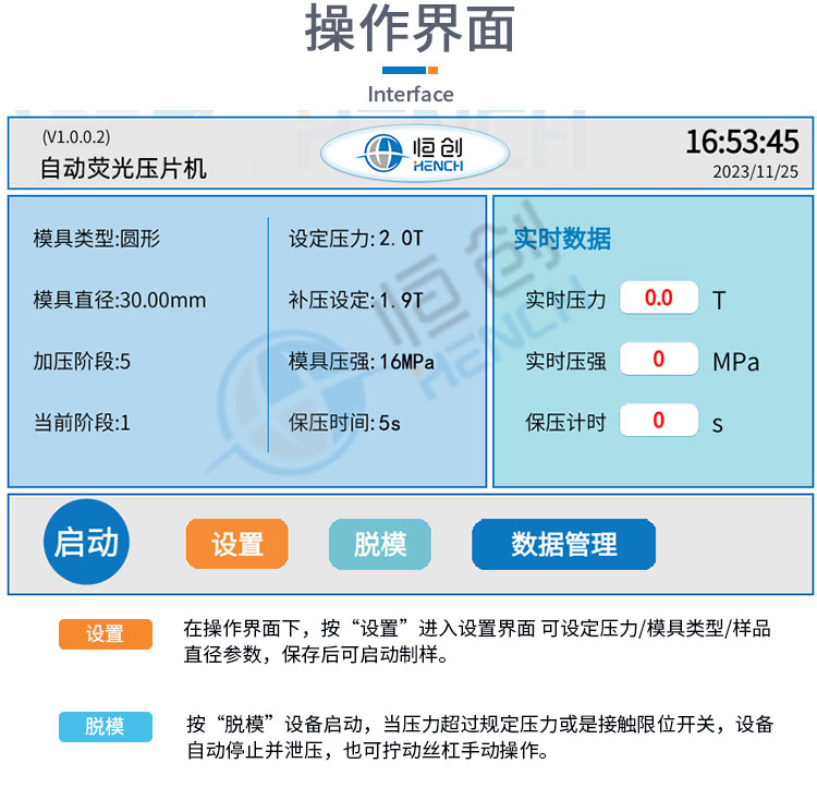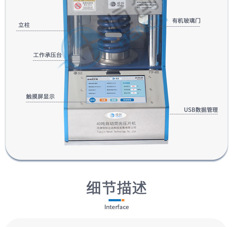 简要描述:30吨全自动荧光压片机(精控版);仪器型号:FTP-30X;压力范围:0.3-30T;自动控制:采用Savta智能程序控制五段加压;加压方式:自动补压-定时保压-自动泄压;模具规格:40-32mm(模具规格可定制);压强换算:系统自动换算样品承受压强(超压提示);设备屏显:7寸触摸屏显示屏;模具材质:440C高硬度模具钢(淬火硬度85°);设置方式:触摸屏操作方便、便捷